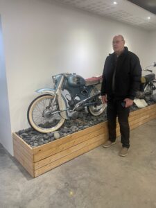 En í gær fékk ég Svein í bæjarferð og sýndi honum hjólið, sem stendur nú á safninu á Akureyri og lítur nánast bara nákvæmlega eins út og þegar hann seldi það 1963, allt orginal og óuppgert.