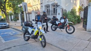 • Ísraeli á BMW 1200 og Frakki á AfricaTwin halda í suður.