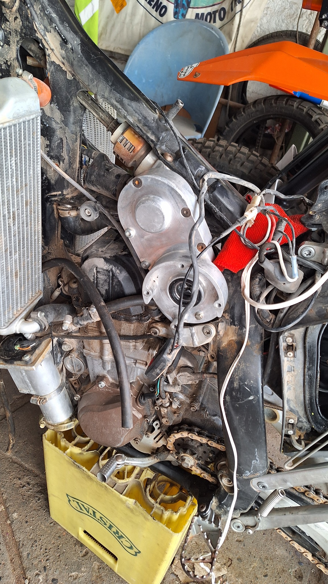 • Frakki á AJP eins og mínu, hjólaði í austur frá Frakklandi og sendi hjólið frá S-Kóreu til Chile, er búinn að hjóla um 45þ km. Hann er búinn að fara með hjólið niður á höfn til að senda það til Hamborgar.