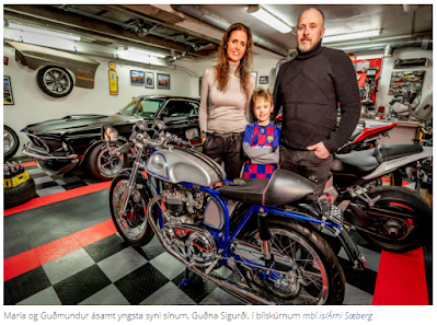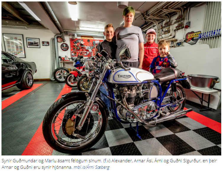 Gaman er að segja frá því að áhuginn á bílum og mótorhjólum virðist ætla að smitast til drengjanna þriggja sem Guðmundur og María eiga, þótt hann komi fram með öðrum hætti en hjá foreldrunum. Elsti sonurinn er átján ára en hinir enn á grunnskólaaldri. „Þegar vinir þeirra koma í heimsókn finnst strákunum gaman að sýna þeim bílskúrinn, en samt líta þeir meira á bíla sem samgöngutæki en nokkuð annað. Hafandi alist upp í þessu umhverfi er ekki laust við að þeim þykir flottir bílar sjálfsagður hlutur og kannski ekki eins rosalega spennandi fyrir vikið. Ég fékk aftur á móti áhuga á bílum og mótorhjólum ungur að árum þegar ég ólst upp í Vestmannaeyjum og hefur áhuginn bara aukist með aldrinum.“