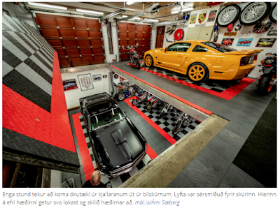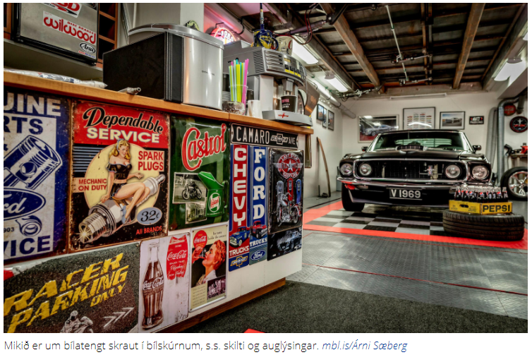 sjá. En þegar vinir og ættingjar kíkja í heimsókn til Guðmundar Árna Pálssonar og Maríu Höbbý setja þeir yfirleitt stefnuna beint á bílskúrinn, enda einstök upplifun að koma þangað inn. Þau hjónin hafa það m.a. fyrir sið að halda mikla veislu í bílskúrnum á milli jóla og nýárs og segir Guðmundur að ef hann dragi það of lengi að bjóða fólki í gleðskapinn fari margir að ókyrrast og