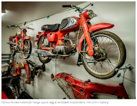 Spurður hvernig það fari saman við starf múrarans að verja löngum stundum í bílskúrnum segir Guðmundur að á þeim tímum árs sem rólegra sé í vinnunni sé ágætt að geta komið að bílskúrnum nákvæmlega eins og var skilið við hann og haldið verkefnum þar áfram þar sem frá var horfið, enda engin hætta á að bílskúrinn og vinnusvæðið fyllist af drasli. „Þegar ég lýk vinnu við eitt mótorhjólið byrja ég á öðru, og svo hefur gamli Mustanginn haldið mér við efnið, en hann fékk ég í hendurnar í pörtum fyrir þremur árum.“