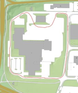 Loftmynd af Mjólkursamsölunni. Á þeim tíma sem við vorum að keyra þarna var húsið efst á myndinni ekki til staða ef ég man rétt. Alla vega var bílum ekki lagt þar og ekki búið að setja graseyjuna þar sem að nær út í sitt hvora áttina sem gerir beygjuna inn á planið ekki eins opna.