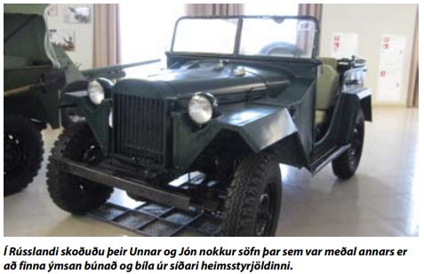 Á ferðalaginu fóru þeir Unnar og Jón á ýmis söfn enda eru þeir miklir tækjadellumenn. Flest þessara safna hafi muni frá hernum, svo sem skriðdreka, vopn og annan búnað. „Við höfðum ekki mikinn áhuga á því en þegar við sáum gömul búnaðartæki, bíla og mótorhjól þá urðum við ánægðir,“ segir Unnar og hlær. Síðasta daginn í Rússlandi fóru þeir á herminjasafn sem er í einkaeigu. Eins og á hinum söfnunum skoðuðu þeir ýmsa muni frá hernum en þar var einnig nýleg fjögurra hæða bygging, þrjár hæðir með bílum og ein hæð með kappakstursbílum og mótorhjólum. „Á jarðhæðinni var að finna gamla alþjóðabíla frá síðustu öld. Eftir því sem maður fór ofar urðu bílarnir nýrri en svo á fjórðu og efstu hæð komum við að himnaríki! Þar var fullt af mótorhjólum. Bara að fara í helgarferð að skoða þetta safn er næg ástæða til að fljúga til Rússlands,“ segir Jón. „Þarna voru líka bílar sem eru svo sjaldgæfir að maður sér þá hvergi annars staðar. Sumir bílarnir voru kannski bara búnir til í tíu eintökum eða fimmtíu eða eitthvað svoleiðis. Það virðist engu máli skipta hvað þeir kosta, þarna eru fullt af svona bílum,“ segir Unnar. „Eigandinn er bara einhver maður sem á koparnámu og er moldríkur,“ bætir hann við.