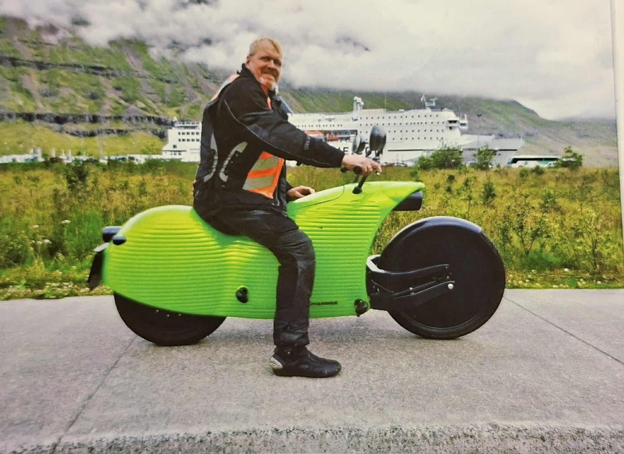 Réttu ári seinna, rakst ég á þennan sama umboðsmann á mótorhjólasýningu í Köln. Þar skaut ég að honum spurningunni: Get ég fengið lánað rafmagnshjól hjá þér til að fara hringinn um Ísland ?  Svarið var svohljóðandi: Nei…. (ég hugsaði; ok, það mátti prufa)… ég vil frekar koma með 2 hjól og við förum hringinn saman !